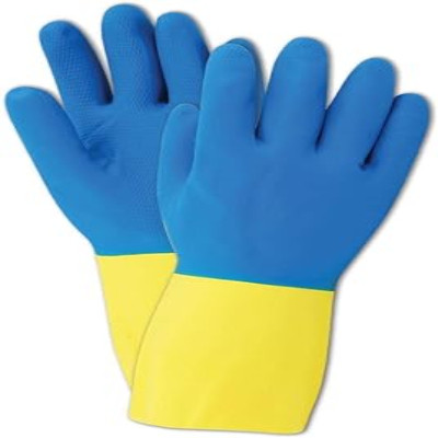 Paper101 Store - #738-10 X-Large 28 Mil Yellow With Blue Neoprene Over Dip Flock Lined Latex Glove, Case/12 Dozen - 304