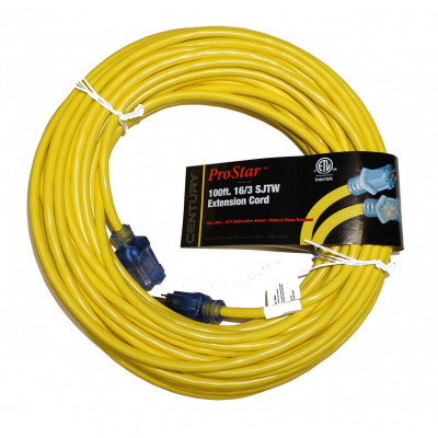 16/3 SJTW Pro Power Extension Cord 100\' Yellow 13Amp CENTURY WIRE & CABLE G161