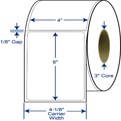 620752 4 x 6 inch white thermal transfer label 3 inch diameter core, 1000 each/case