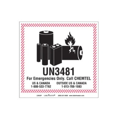 LABELMASTER UN3481 126X121 mm LITHIUM Ion BATTERY LABEL CUSTOM, 500 Each/Roll