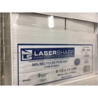 8.5x11 10m 20# (75 gsm) white 92+ 3hp laser sharp 30% pcw recycled multipurpose letter size copy paper gl, 500 shts/ream, 10 reams/carton