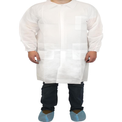 Keywords: Polypropylene Disposable Lab Coat, Elastic Wrist, Three Pockets.